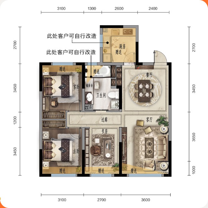 精致实用三居,零空间浪费,景观阳台,超大赠送,南北三房,灵动空间,随心设计,彰显非凡镜界,宽厅连接景观阳台,拥抱自然美景。