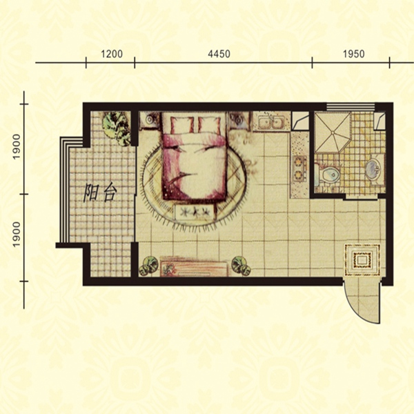 高层42平一室一厅一卫户型