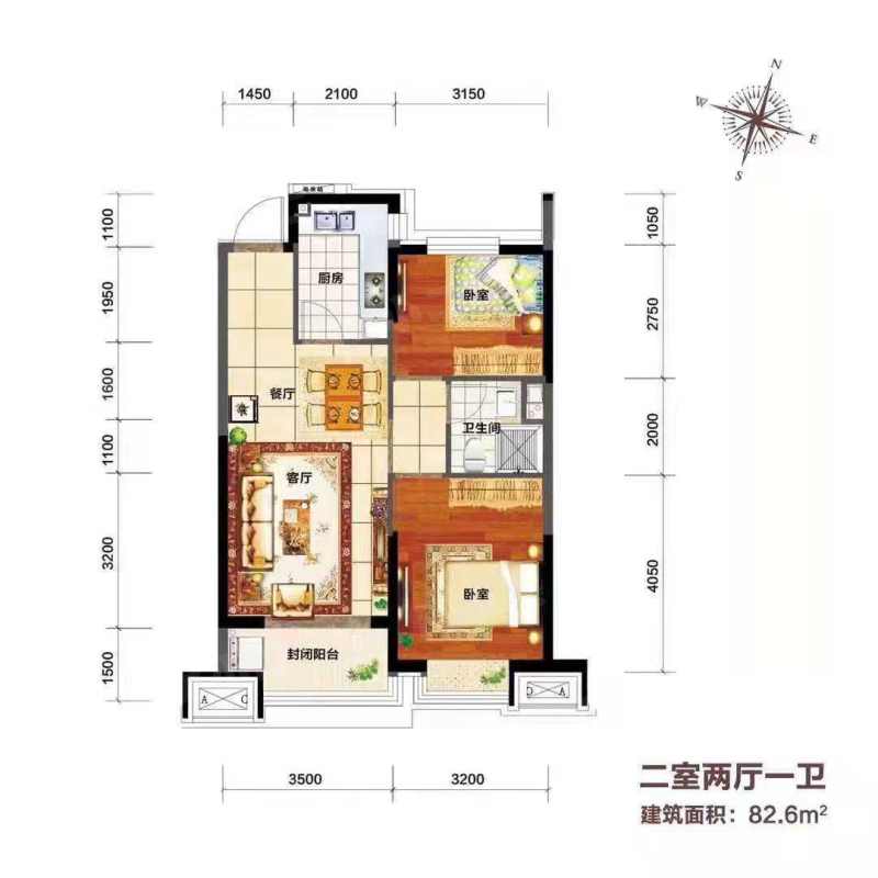 恒大绿洲九期 2室 2厅 1卫 84㎡