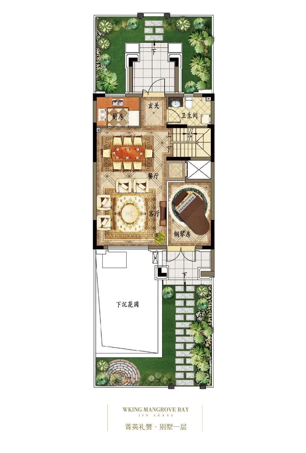 万锦·红树湾119-159平城市联排别墅,满园芳菲前庭后院,打造城市中久违的纯粹私家院落生活,筑就繁华深处静谧悠然的生活场景——老人的原生态菜园、夫人的下午茶花园、孩子的专属乐园,一席墅院将自然与别墅的空间融合统一,前庭后院、南北观景露台尽享四季之趣,让居者心灵回归自然。